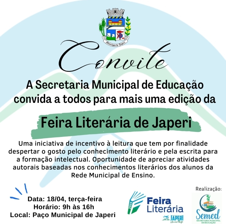Mais uma edição da feira litetaria de Japeri, uma iniciativa de incentivo à leitura que tem por finalidade despertar o gosto pelo conhecimento literário e pela escrita para a formação intelectual.